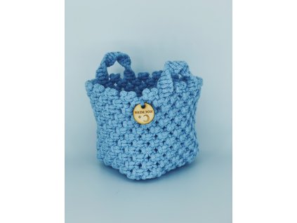 Duha macramé bílo-modrá závěsná dekorace do dětského pokoje 30 x 16 cm