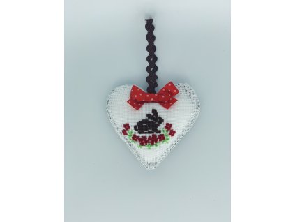 Vyšívané srdíčko se zajíčkem červené závěsná dekorace