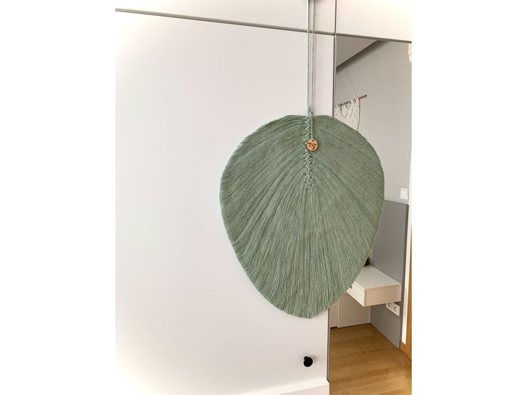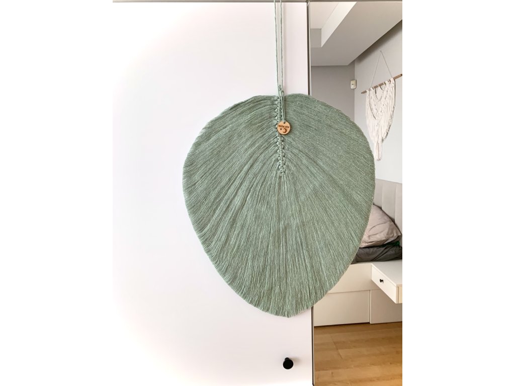 Závěsná dekorace List XXXL vyrobená technikou macramé ze 100% přírodní bavlněné příze. Originální výrazná interiérová dekorace.