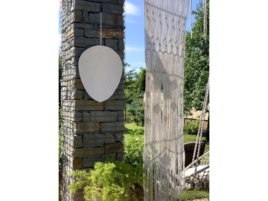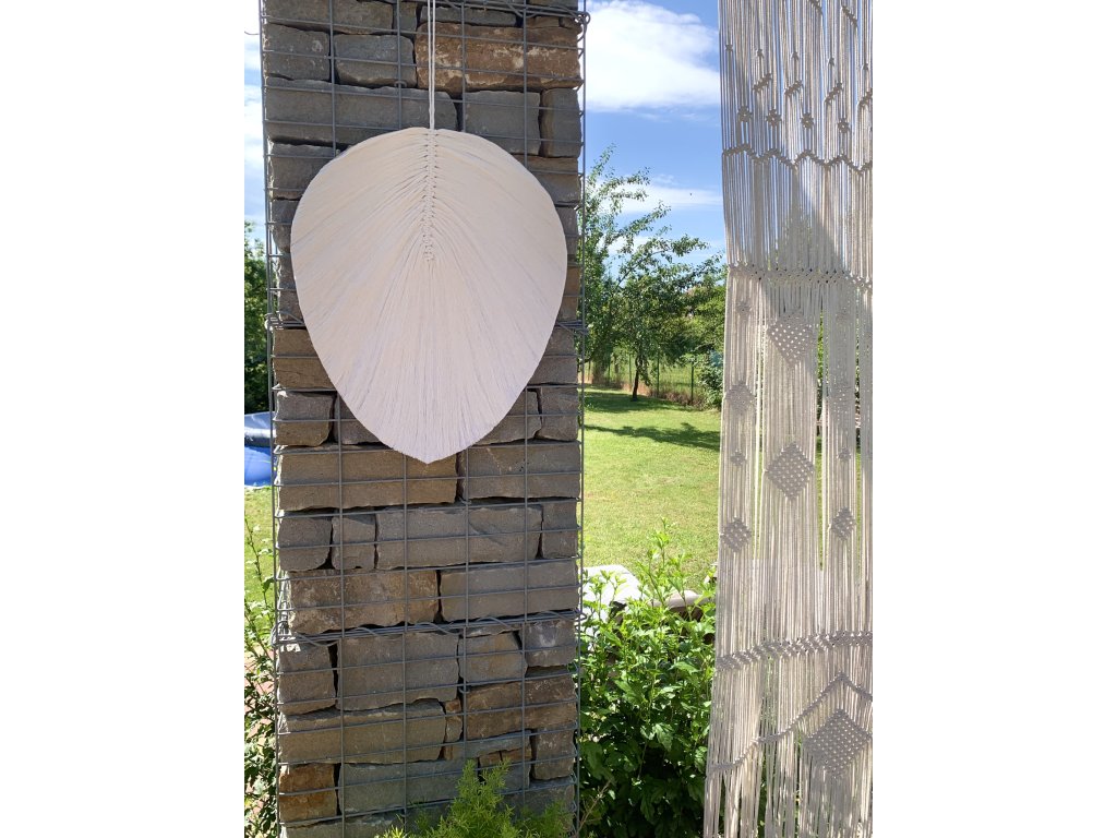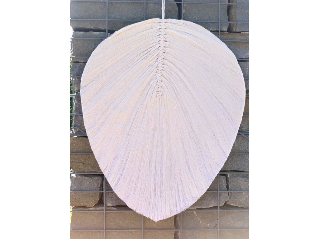 Závěsná dekorace List XXXL vyrobená technikou macramé ze 100% přírodní bavlněné příze. Originální výrazná interiérová dekorace.