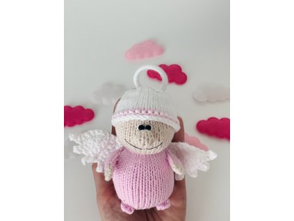 Dekorační předmět Anděl s růžovou čepicí výška 12 cm