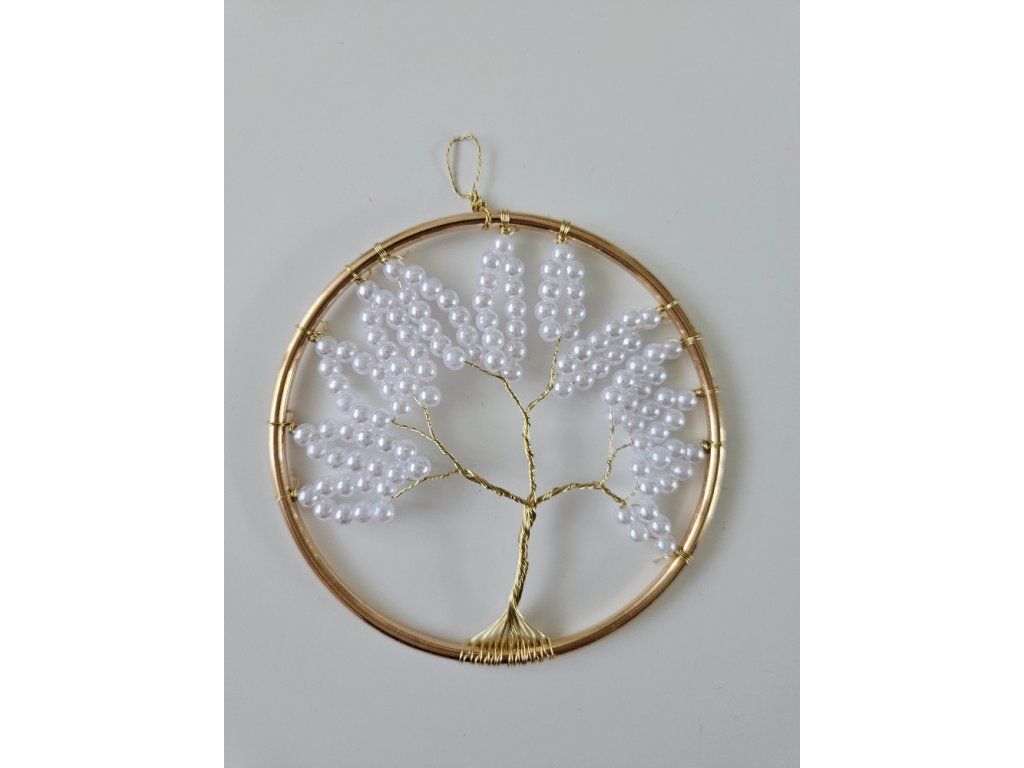 Strom života drátěný s bílými korálky