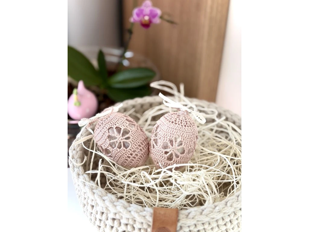 Ručně háčkovaná velikonoční kraslice – jarní křehkost v přírodních tónech